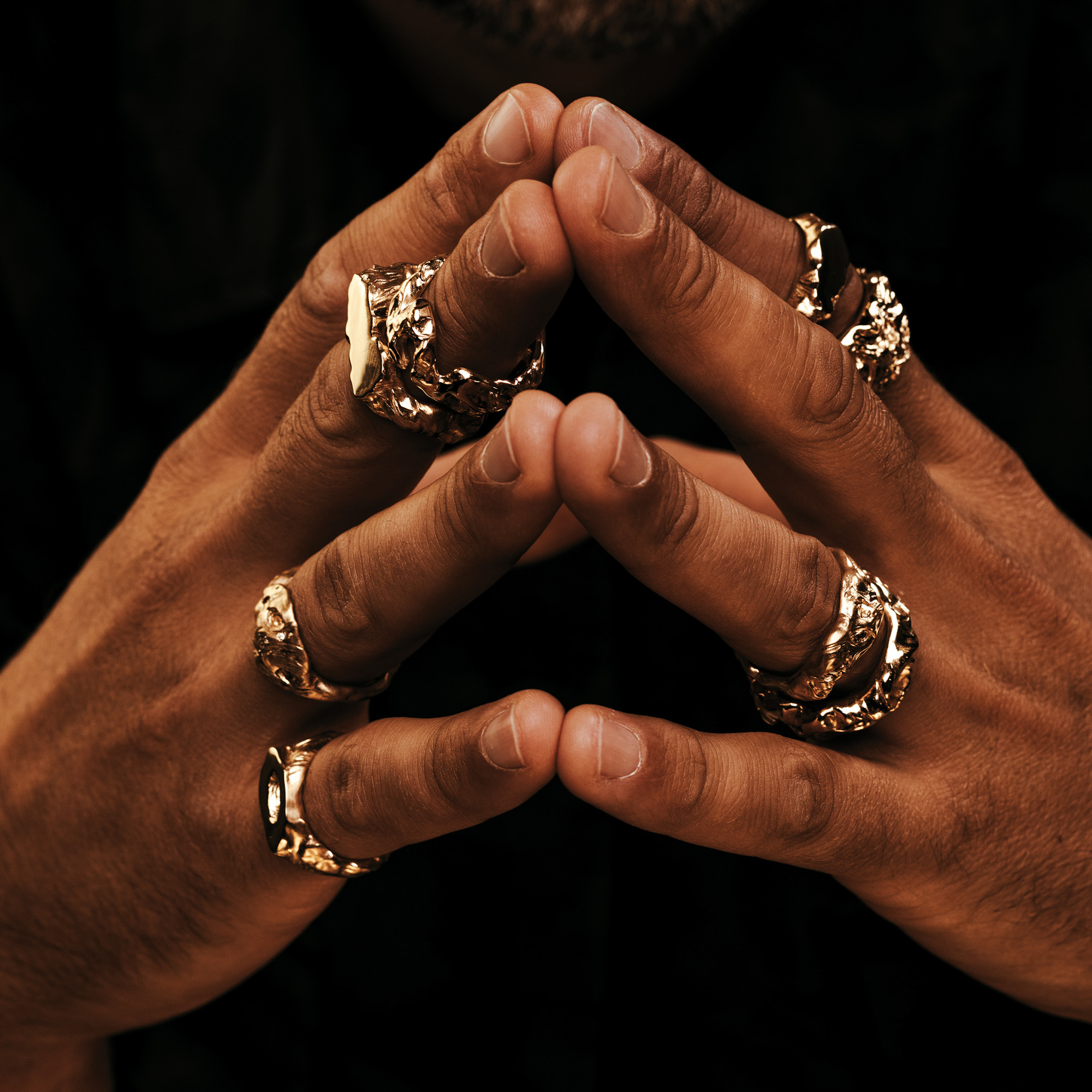 Jedinečný unisexový prsten s ručně vsazenými přírodními diamanty do 18k zlata (750/1000). Design šperku vychází z organických struktur rozlivu barev na vodní hladině dvojice výtvarníků Ondrash&Kašpárek pomocí speciální techniky kombinující moderní 3D technologie s tradičním zlatnickým řemeslem. Nasílená oválná hlava prstenu je bohatě zdobena devíti brilianty, které se vinou kolem několika prostorově výrazných děr, ikonických pro díla Ondřeje Konupčíka a Radima Kašpárka. Z kolekce SPOJENI patří mezi nejpůsobivější prsteny, který kromě živelnosti zlata nabízí také úchvatnou hru barev a odrazu světla diamantů.
